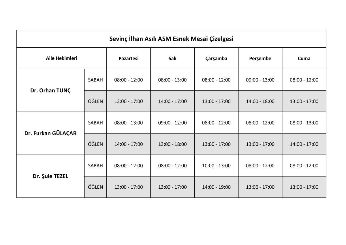 | Günler | Mesai Saatleri |